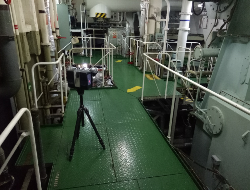 新加坡貨輪掃描現(xiàn)場,利用三維激光掃描儀對貨輪復雜結(jié)構(gòu)進行3D掃描